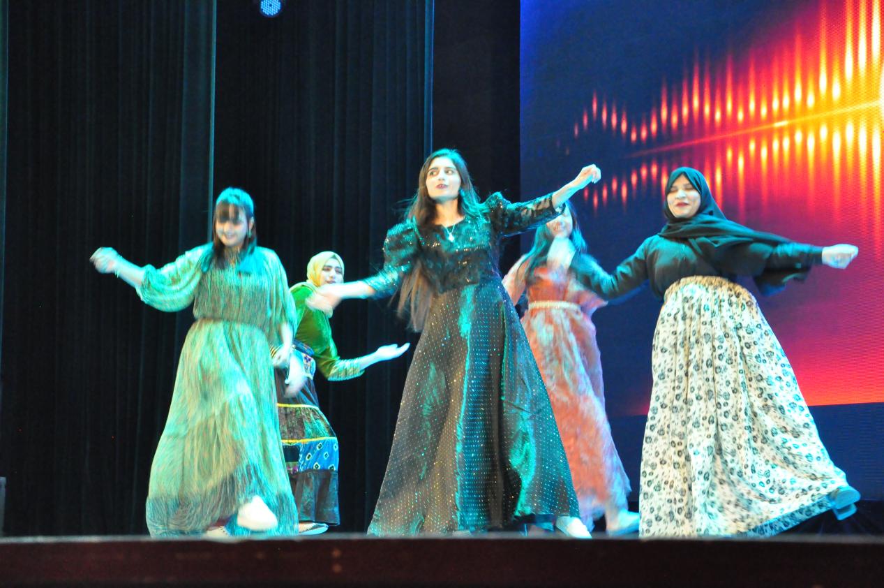 下半场则转向温情与深度的演绎。研究生钢琴独奏与歌曲带来沉浸式感动。舞蹈与留学生节目继续散发活力,接下来的歌曲则唱出真挚感恩。颇具故事感的国风舞蹈与教工独唱,分别以视觉与听觉之美打动人心。最后,充满异域风情的巴基斯坦舞蹈与全体教工合唱,以国际化的热情与家的温暖为整场演出画上圆满句号。