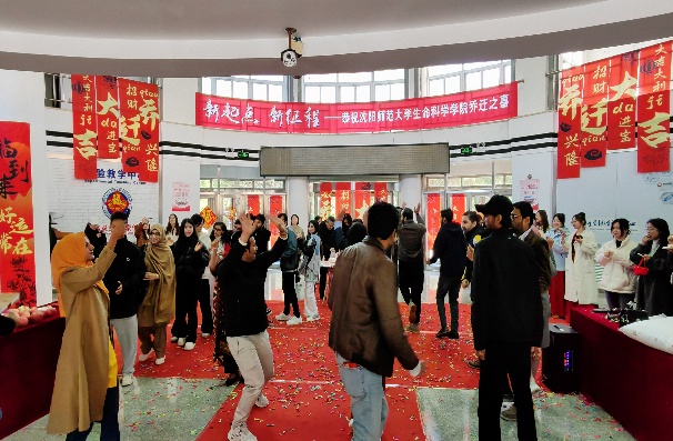 仪式伊始,学院党委书记田红雨将寓意吉祥的“五谷丰登”盘放于门前梯子旁,张阳院长随即邀请全体师生依次迈过“步步高升梯”,以此象征学院未来步步登高、勇攀学术巅峰的美好愿景。随后,张阳院长代表学院向出席仪式的各位嘉宾、师生致以热烈的欢迎和诚挚的感谢。她在致辞中回顾了生命科学学院多年来的奋进历程——学院始终秉持锐意进取的精神,广纳贤才,不断深化国内外交流合作,在学科建设与专业发展方面取得了显著成就。她表示,学院每一次的跨越式发展,都离不开学校党委和行政的坚强领导与亲切关怀。为更好地支持学院发展、优化办公环境,学校积极统筹资源,全力拓展办公空间、改善办公条件,极大地鼓舞了全院师生。大家将以此次搬迁为契机,携手迈向高质量发展的新征程。田红雨书记在随后的致辞中强调,崭新的环境象征着全新的开始。她寄语全院师生,在新空间中激发更多创新活力,团结一心、快乐前行;拼搏向上、日日精进,共同书写生命科学学院更加辉煌的未来篇章。