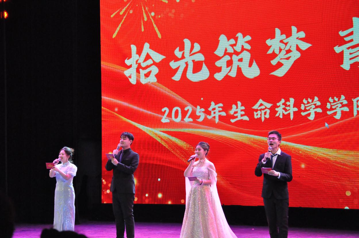 晚会在四位主持人热情洋溢的开场中正式开始。他们代表学院向全体2025级新生表示热烈欢迎,向孜孜不倦的高年级同学和潜心科研的研究生学长学姐致以诚挚问候。一场属于生科人的青春盛宴,在温暖与期待中拉开序幕。